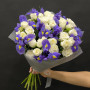 Букет из белых роз и синих ирисов